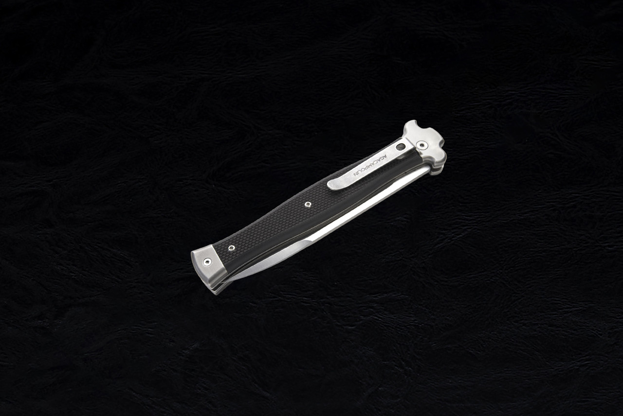 ZERO+ is a modern stiletto with leverlock mechanism and is the longest leverlock available!! It has a N690Co stainless steel bayonet blade with satin finish and a solid AISI 430 steel glass blasted bolster. The double spring gives faster action and guarantees longer durability. The inverted lever gives a quick opening action. The black G10 handle has a 3d texture for a better grip. The stainless steel pocket clip can be easily removed and replaced with a steel shield.