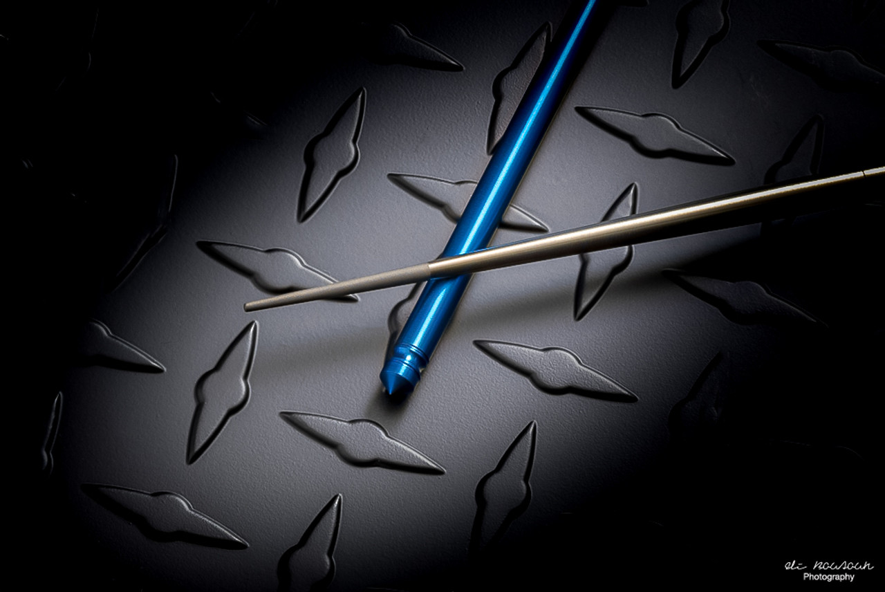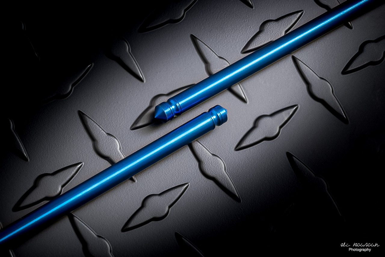 Feed yourself and your pride of ownership with these exquisitely crafted titanium chopsticks. Designed and engineered by world-renowned custom knifemaker Alan Folts and manufactured under the Foltsum™ brand, these chopsticks are beautifully crafted from solid 6AL 4V titanium stock. Their two-piece construction allows them to be conveniently carried when not in use, yet assembled in seconds thanks to a precision threaded joint. Machined in painstaking detail, they feature three different surface finishes, including a bead blasted area near the tip for a secure grip on food, a satin-finished center section, and a rich color-anodized handle section. Machined accents at the top and center add both a touch of style and a thoughtful grip texture that complements their perfect balance. Remarkably strong and lightweight, these elite eating utensils are also 100% corrosion resistant, completely food safe, hypoallergenic, and easily cleaned with ordinary soap and water. They come complete with a ballistic nylon carry pouch with dedicated pockets for all four pieces and a heavy-duty Velcro® closure. Specifications: