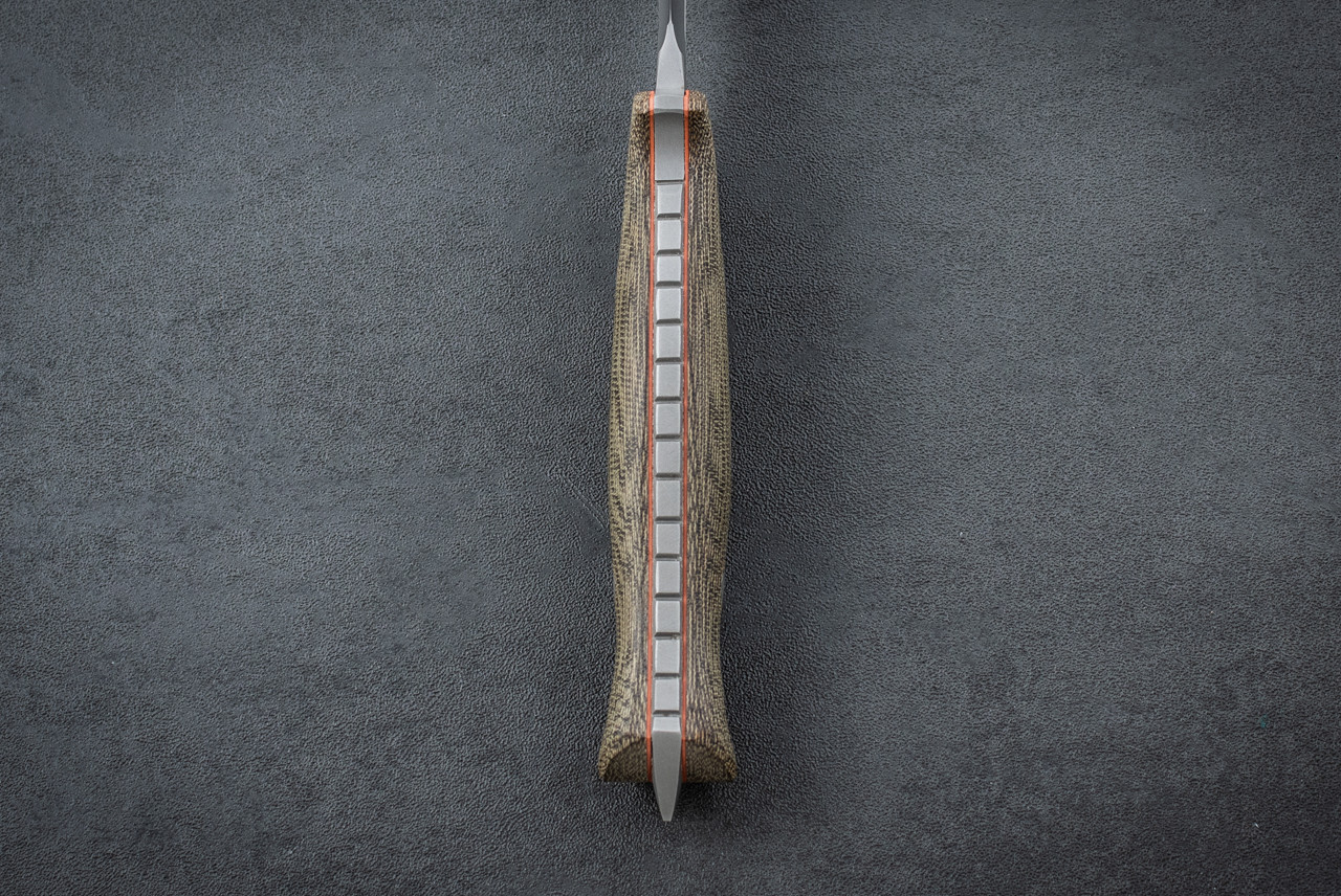 - Handle Material: Canvas Micarta w/ Brick Red Liners