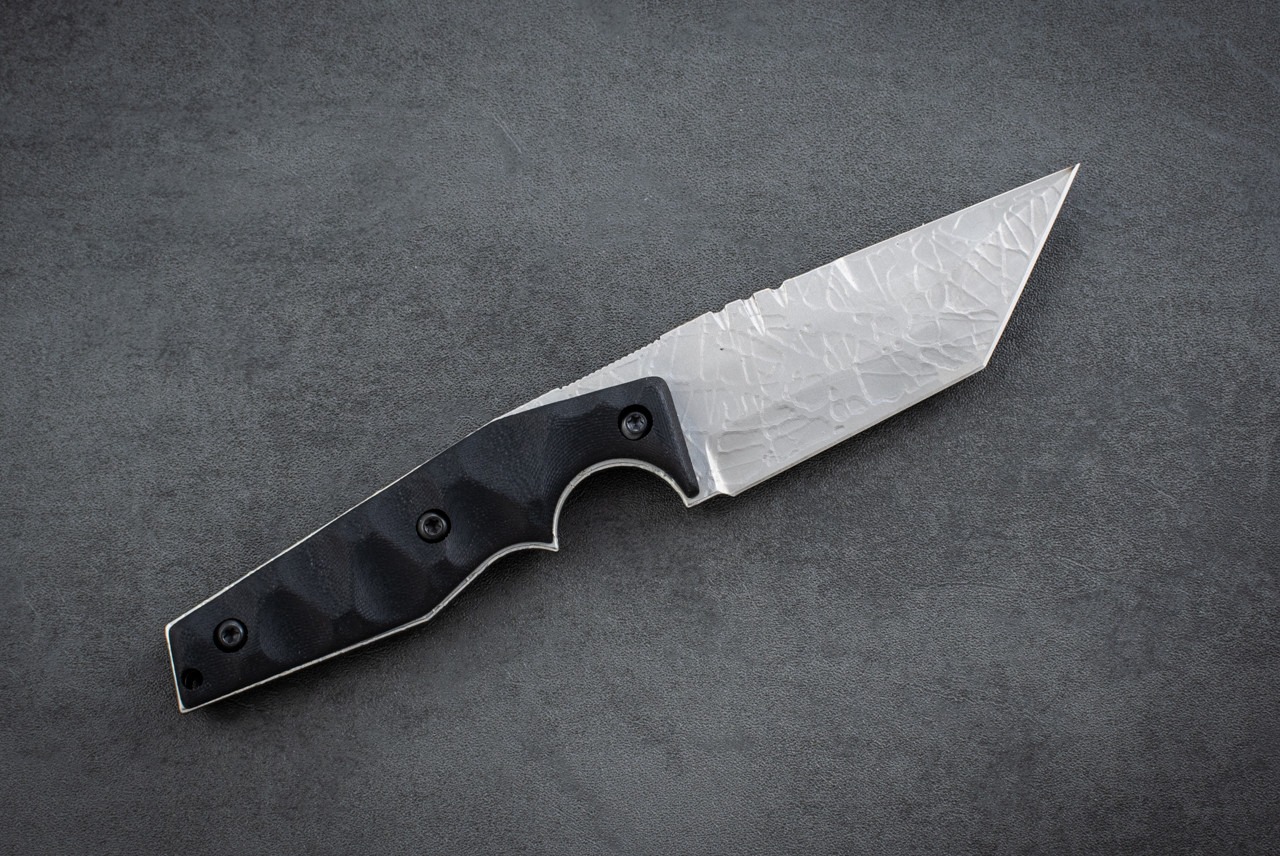 - Blade Finish: Bawidamann Acid Etched* QuickSliver Patina (Due to the custom nature of this finish each knife varies slightly from actual picture)