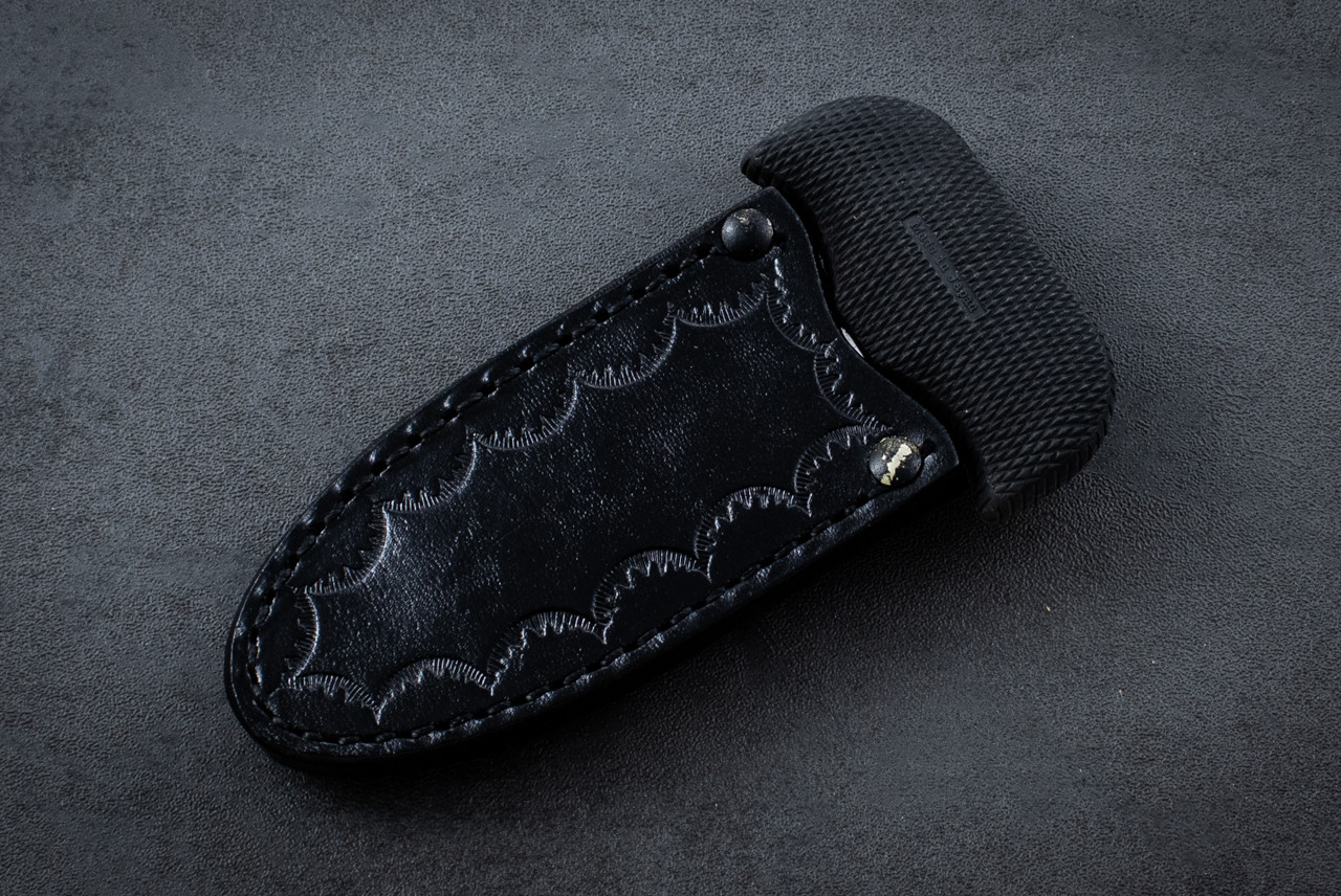 Cold Steel Defender II By Hattori Vintage Push Dagger Knife Satin Blade w/ Black Kraton Handle and Leather Sheath - 02