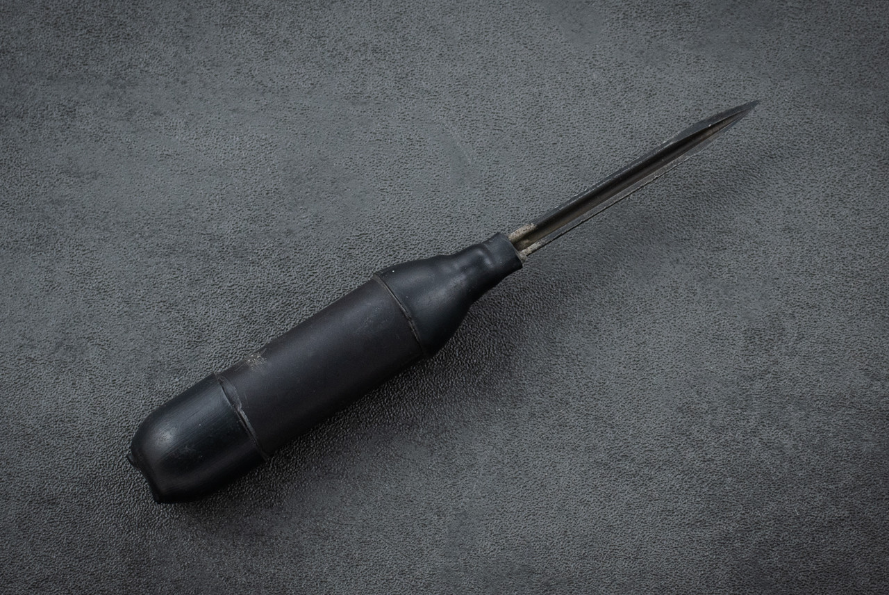 Fred Perrin makes fixed blades and folders of every kind; Forges Damascus steel or uses stock removal techniques. In any case, he always does his own heat treatment and tempering. As far as his background in the martial arts, Fred has spent two years in the French Army Commandos and worked as a bodyguard. He was a national Tae Kwon Do champion and a European full contact stick-fighting champion. He has trained in Kali, and God knows what else. His weapon of choice is the butterfly knife, in which he excels. Aside from being France’s most famous and controversial knife maker and tactical writer, Fred runs a school where he teaches a very unique blend of knife, stick, and empty hand techniques. He is often contracted by France’s elite police units for seminars. He also provides some agencies with custom-made weapons for ballistic testing. Specifications: