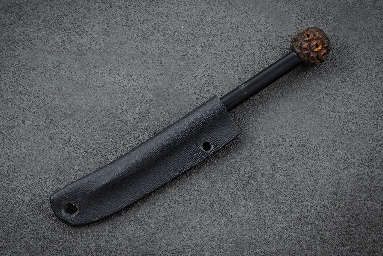 Fred Perrin makes fixed blades and folders of every kind; Forges Damascus steel or uses stock removal techniques. In any case, he always does his own heat treatment and tempering. As far as his background in the martial arts, Fred has spent two years in the French Army Commandos and worked as a bodyguard. He was a national Tae Kwon Do champion and a European full contact stick-fighting champion. He has trained in Kali, and God knows what else. His weapon of choice is the butterfly knife, in which he excels. Aside from being France’s most famous and controversial knife maker and tactical writer, Fred runs a school where he teaches a very unique blend of knife, stick, and empty hand techniques. He is often contracted by France’s elite police units for seminars. He also provides some agencies with custom-made weapons for ballistic testing. Specifications: