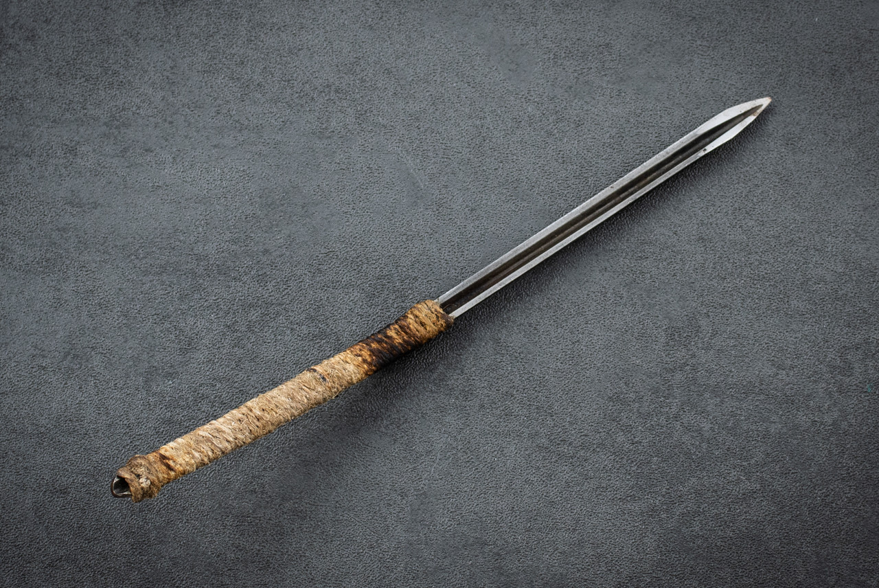 Fred Perrin makes fixed blades and folders of every kind; Forges Damascus steel or uses stock removal techniques. In any case, he always does his own heat treatment and tempering. As far as his background in the martial arts, Fred has spent two years in the French Army Commandos and worked as a bodyguard. He was a national Tae Kwon Do champion and a European full contact stick-fighting champion. He has trained in Kali, and God knows what else. His weapon of choice is the butterfly knife, in which he excels. Aside from being France’s most famous and controversial knife maker and tactical writer, Fred runs a school where he teaches a very unique blend of knife, stick, and empty hand techniques. He is often contracted by France’s elite police units for seminars. He also provides some agencies with custom-made weapons for ballistic testing. Specifications: