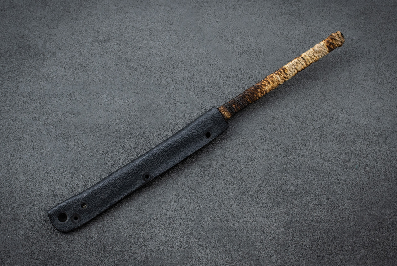 Fred Perrin makes fixed blades and folders of every kind; Forges Damascus steel or uses stock removal techniques. In any case, he always does his own heat treatment and tempering. As far as his background in the martial arts, Fred has spent two years in the French Army Commandos and worked as a bodyguard. He was a national Tae Kwon Do champion and a European full contact stick-fighting champion. He has trained in Kali, and God knows what else. His weapon of choice is the butterfly knife, in which he excels. Aside from being France’s most famous and controversial knife maker and tactical writer, Fred runs a school where he teaches a very unique blend of knife, stick, and empty hand techniques. He is often contracted by France’s elite police units for seminars. He also provides some agencies with custom-made weapons for ballistic testing. Specifications: