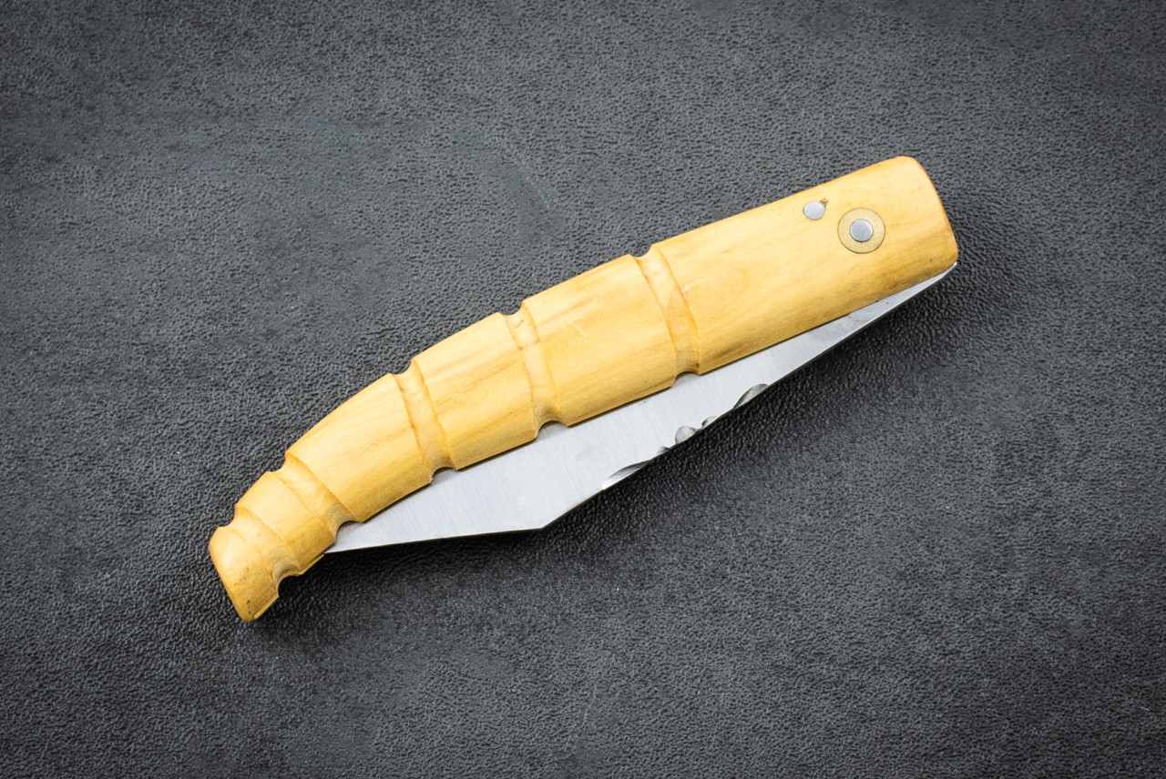 These Folders are 1065 carbon steel based on an old French regional design from the 17th to 18th century. The pattern is tied to the Paris court and is known for being simple, practical, and elegant. This series was made using stock parts true to the original design, with each knife assembled and finished by Fred Perrin himself. Fred chose these parts and completed the knives following the traditional approach. They are some of his favorite pieces because they are cool, lightweight, and a little unusual, but more than anything because they carry real history and show his connection to a classic French regional knife. Specifications: