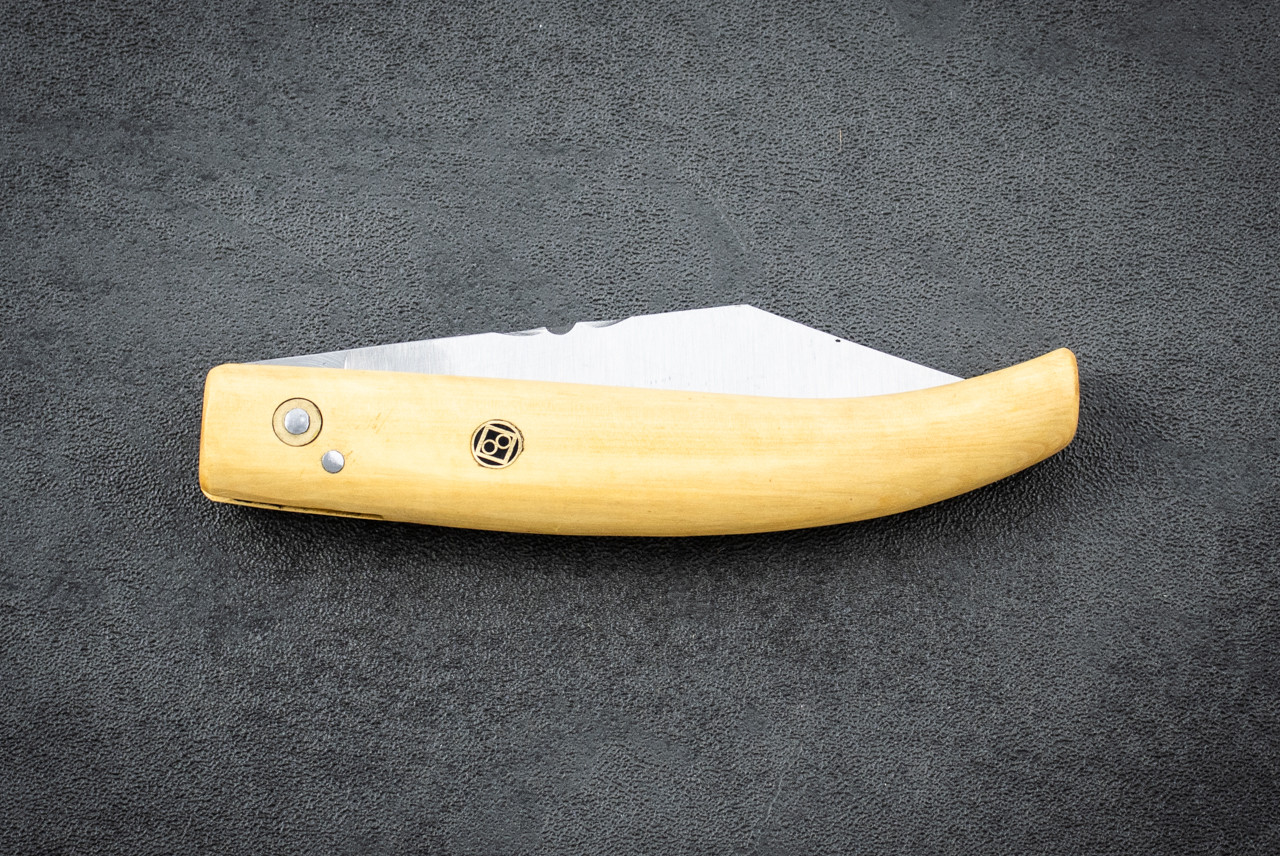 These Folders are 1065 carbon steel based on an old French regional design from the 17th to 18th century. The pattern is tied to the Paris court and is known for being simple, practical, and elegant. This series was made using stock parts true to the original design, with each knife assembled and finished by Fred Perrin himself. Fred chose these parts and completed the knives following the traditional approach. They are some of his favorite pieces because they are cool, lightweight, and a little unusual, but more than anything because they carry real history and show his connection to a classic French regional knife. Specifications: