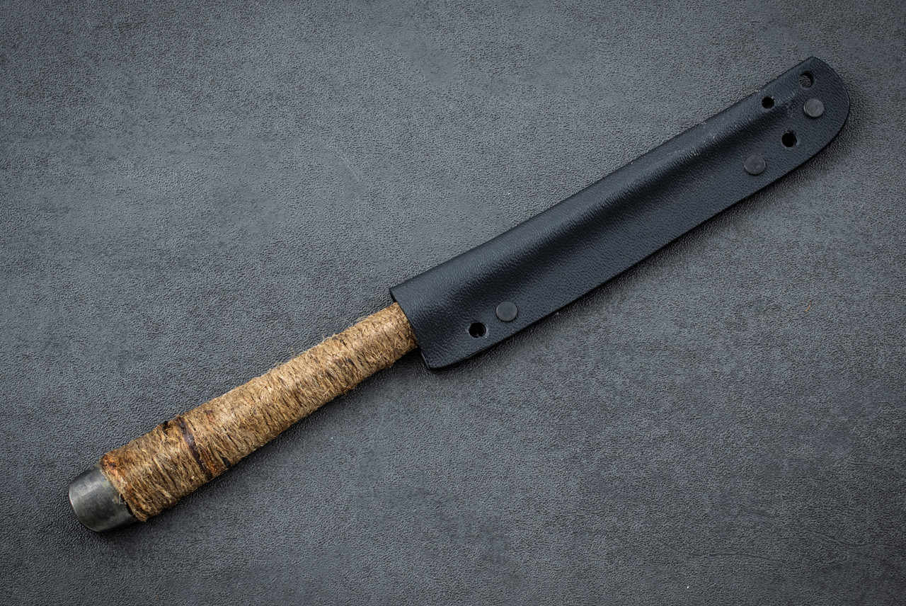 Fred Perrin makes fixed blades and folders of every kind; Forges Damascus steel or uses stock removal techniques. In any case, he always does his own heat treatment and tempering. As far as his background in the martial arts, Fred has spent two years in the French Army Commandos and worked as a bodyguard. He was a national Tae Kwon Do champion and a European full contact stick-fighting champion. He has trained in Kali, and God knows what else. His weapon of choice is the butterfly knife, in which he excels. Aside from being France’s most famous and controversial knife maker and tactical writer, Fred runs a school where he teaches a very unique blend of knife, stick, and empty hand techniques. He is often contracted by France’s elite police units for seminars. He also provides some agencies with custom-made weapons for ballistic testing. Specifications: