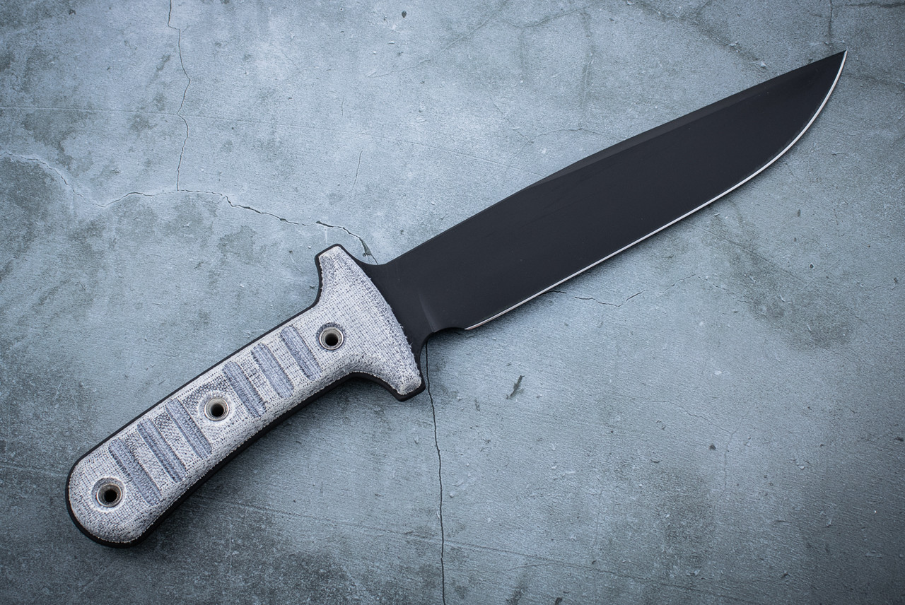 The maker no longer use Micarta as he find the TeroTuf lighter, grippier, and tougher. - Sheath: Boltaron