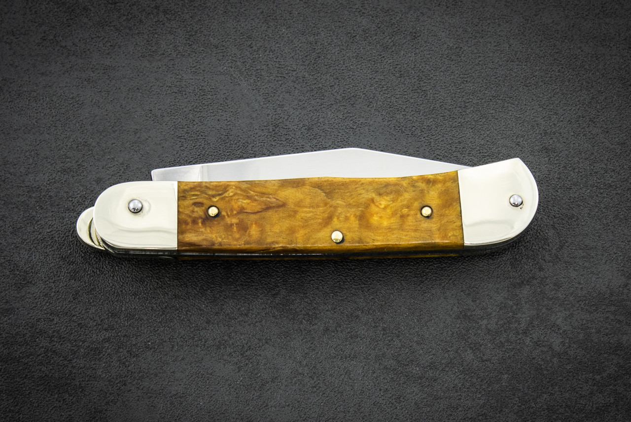 Besides classic style springers we are manufacturing switchblade knives which can be released by using a press button (button release), by sliding the handle slab (scale release) or by pushing a pen blade (pen blade release).