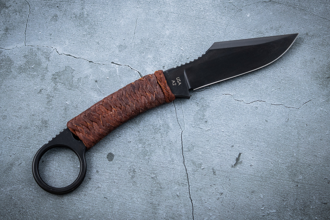 The Element is a A2 tool steel knife that is part karambit, part Skinner, part self-defense and part general utility with the Knight requirement of a harpoon-recurve style. Here is a light weight knife that can serve as a daily companion on your belt, in your pack or strapped to a soldiers gear or hidden on a cop's gun belt. Try and we bet you will agree.....This is just a really good all around knife with the looks to match.