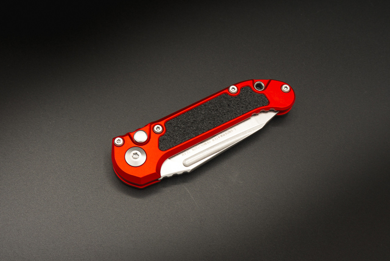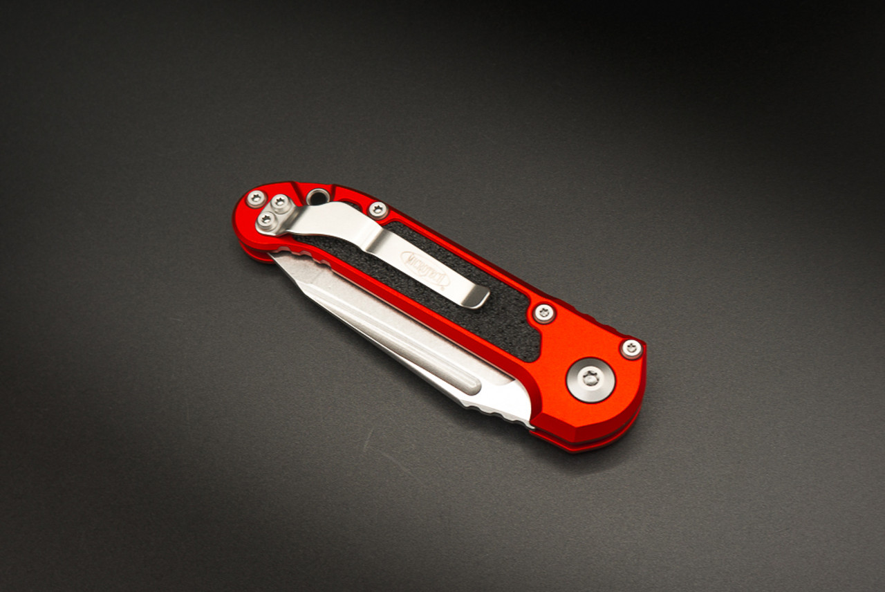 L.U.D.T. (Large Underwater Demolition Team) As pioneer of the Microtech® folding knife line, the UDT was created in 1995 and has evolved to be an exceptional combination of form and function. The first prototype models featured rubber Kraton inlays and were available in small, medium, and large sizes. These models were later consolidated to a single size, featuring a grooved, contoured aluminum handle with jimping along the top of the handle that carries onto the spine of the blade. The LUDT® boasts an explosive deployment mechanism not commonly found in a knife of this size. Specifications: