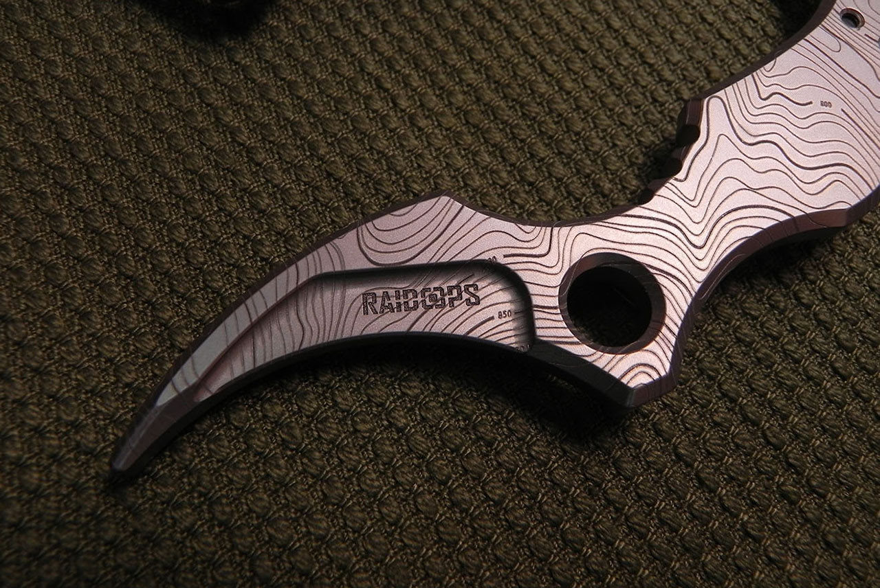 This is the latest model in the CQCT series. It inherits the DNA of the CQCT KARAM CARRY while adopting a reverse edge form for more aggressive and effective defense. It enables precise vertical strikes when hammering and, like the KARAM CARRY, is equipped with a clip for securing to a belt. The design of the CQCT KARAM CARRY is already well-regarded for its ergonomics and comfortable grip, so the successor K-REVERSE EDGE model can also be considered nearly perfect in terms of carry and use. There are two versions: the Metallic Contour version and the Dark Brown Contour version.