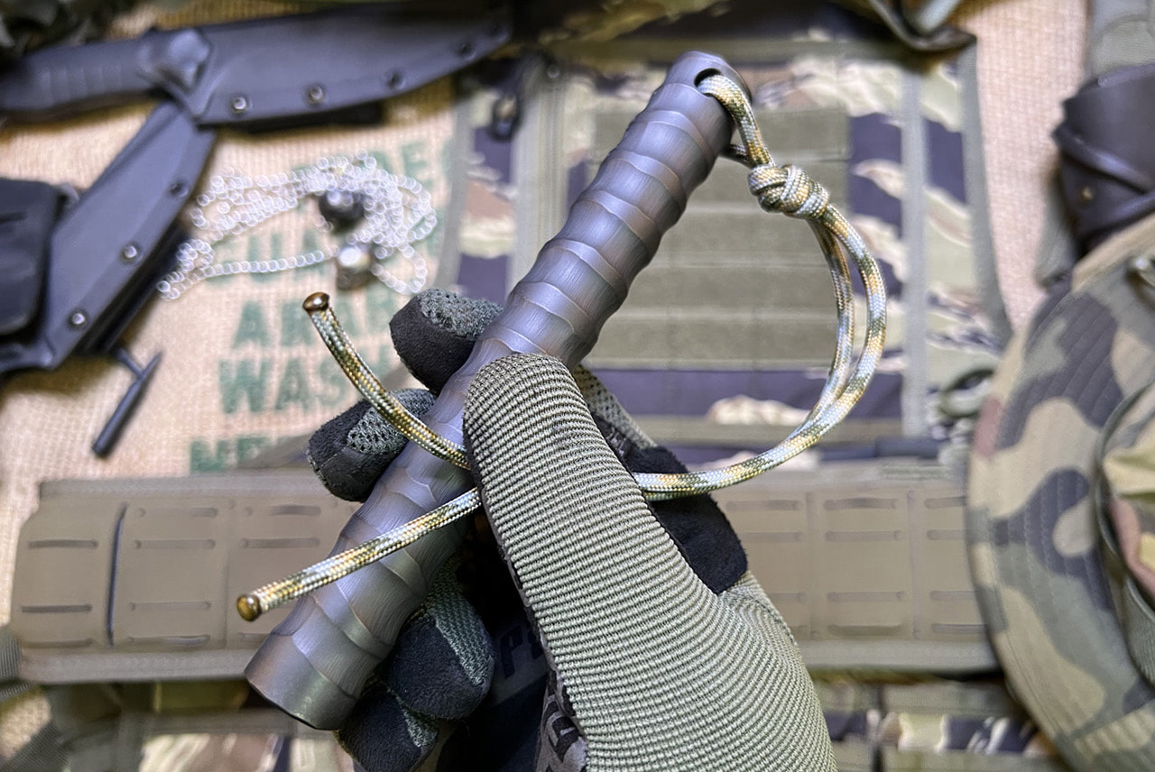 This product continues the RAIDOPS KUBOTAN ‘KUBO’ series, a true defense tool capable of devastating attacks depending on the user's skill level. It builds upon the existing Tiger Stripe design, implementing a stable grip for enhanced handling. Double heat-treatment enhances its toughness, amplifying its power effect. Simply carrying it will instill a sense of confidence. Two options are available: both come equipped with paracord, but you can also choose a version featuring a 316 stainless steel SKULL. This SKULL is a stylish lanyard bead that can be used as a standalone pendant.
