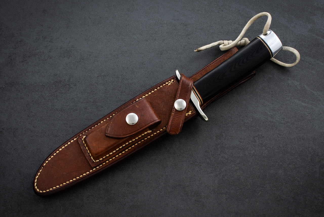he top cutting edge sharpened approximately 3 inches. Crossguard is nickel. Duralumin butt cap. This is the knife made famous by Allied combat troops in World War II and since widely used in all theaters of war.