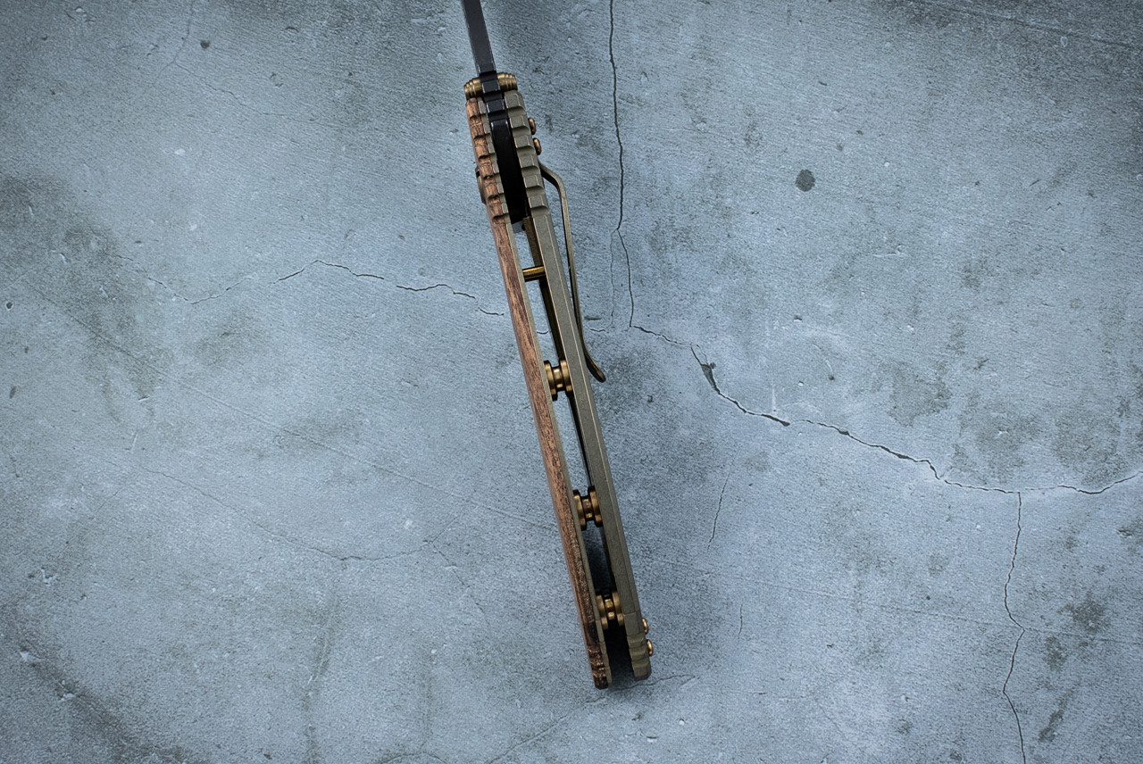 In house stabilized walnut handle scales and a subdued green anodized lockside complete the historic aesthetic, echoing the materials and finishes found on classic military and field knives. Each knife is individually serialized, marking its place in this limited Vintage Series run.