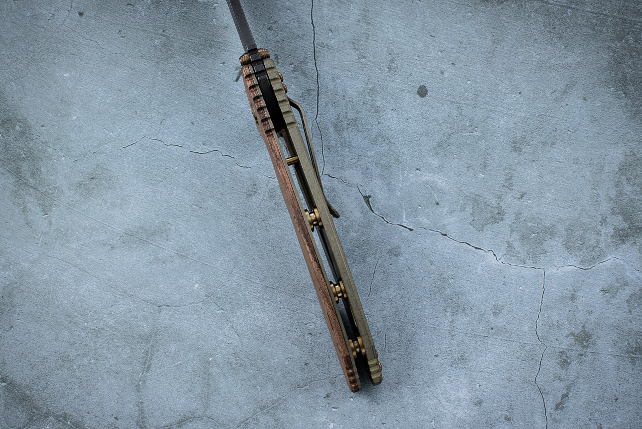 In house stabilized walnut handle scales and a subdued green anodized lockside complete the historic aesthetic, echoing the materials and finishes found on classic military and field knives. Each knife is individually serialized, marking its place in this limited Vintage Series run.