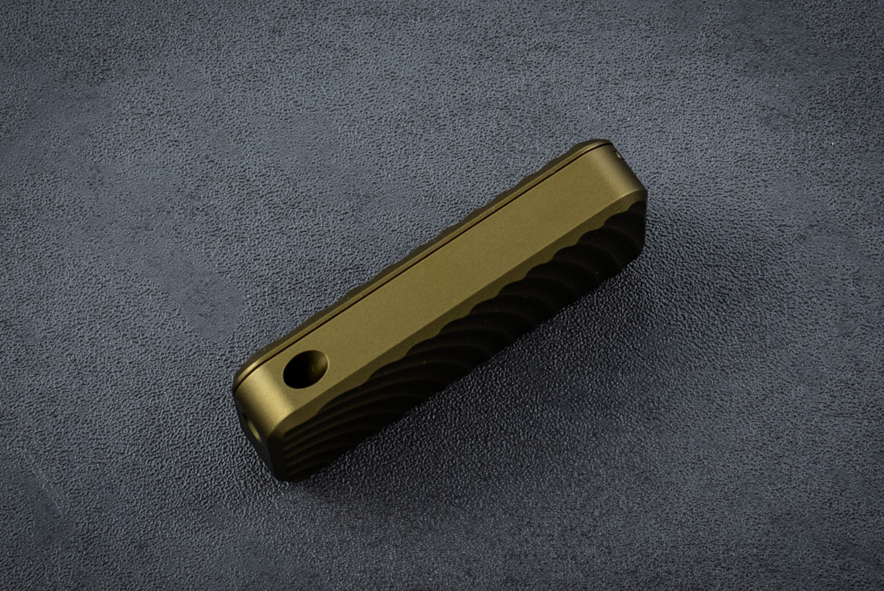 This is a knife we sent off to Cadlab CNC for a custom anodize job. Of course, they absolutely killed it! These guys are machinists and artists with immense skill.