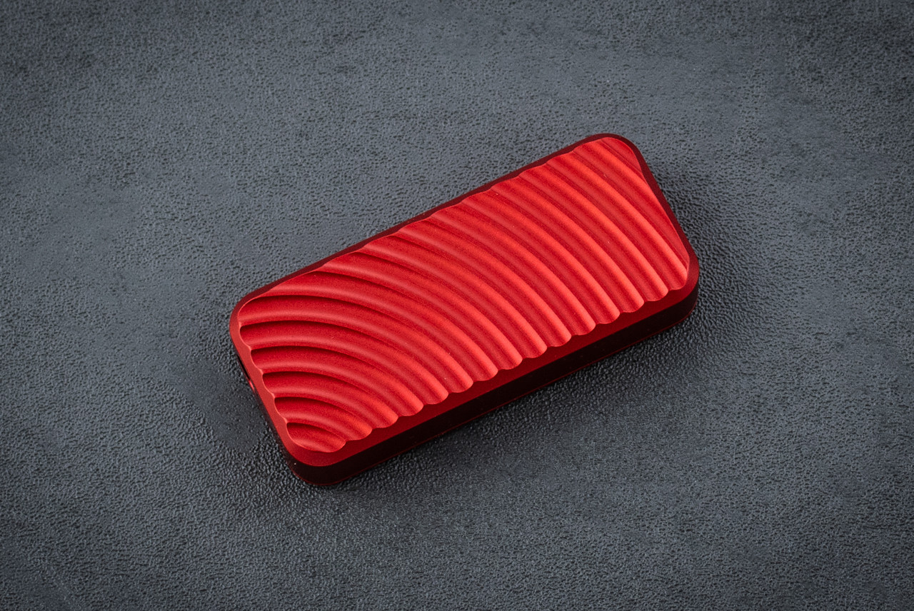 This is a knife we sent off to Cadlab CNC for a custom anodize job. Of course, they absolutely killed it! These guys are machinists and artists with immense skill.