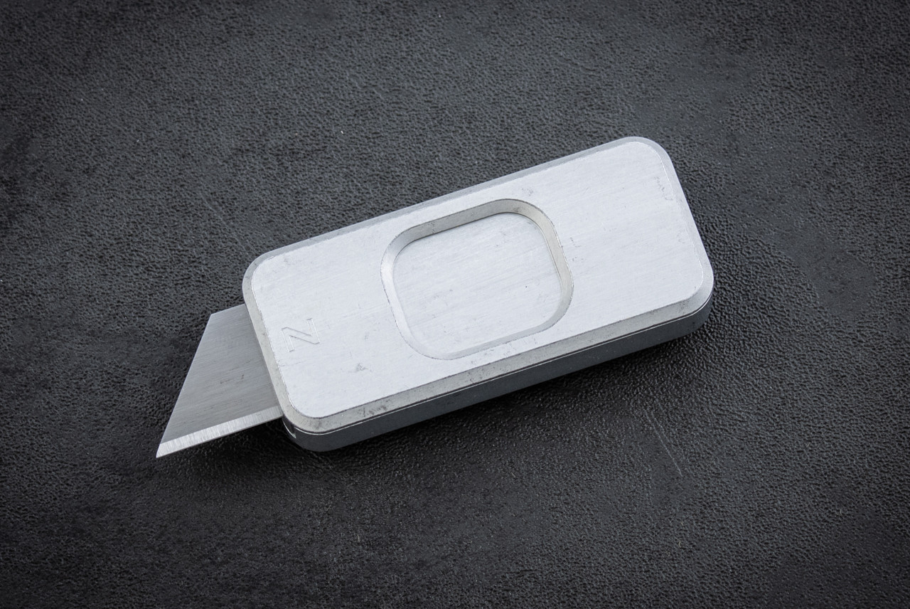 Zero is a utility knife designed to look and feel as seamless as possible. It features a manual blade extension with an auto retract mechanism.