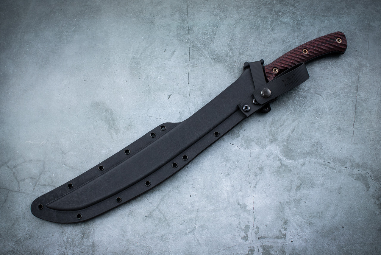 This is our Exclusive 3V Syndicate Wyvern Sword Hand Textured Blade w/ Black / Cherry G-10 Handle and Sheath