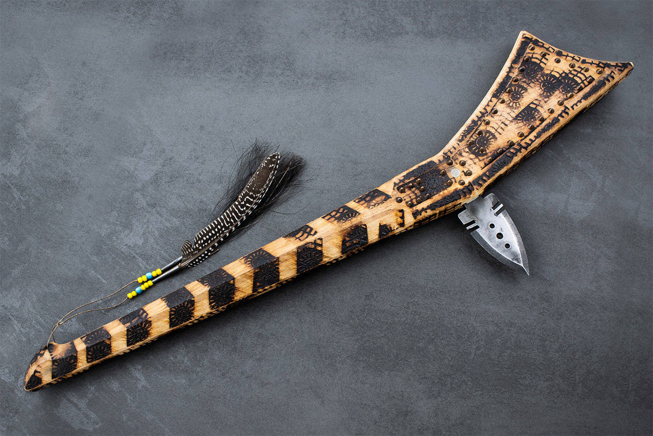 RMJ Tactical Gold Point Forge Gun Stock War Club Burned Hickory and Leather Sheath - #01