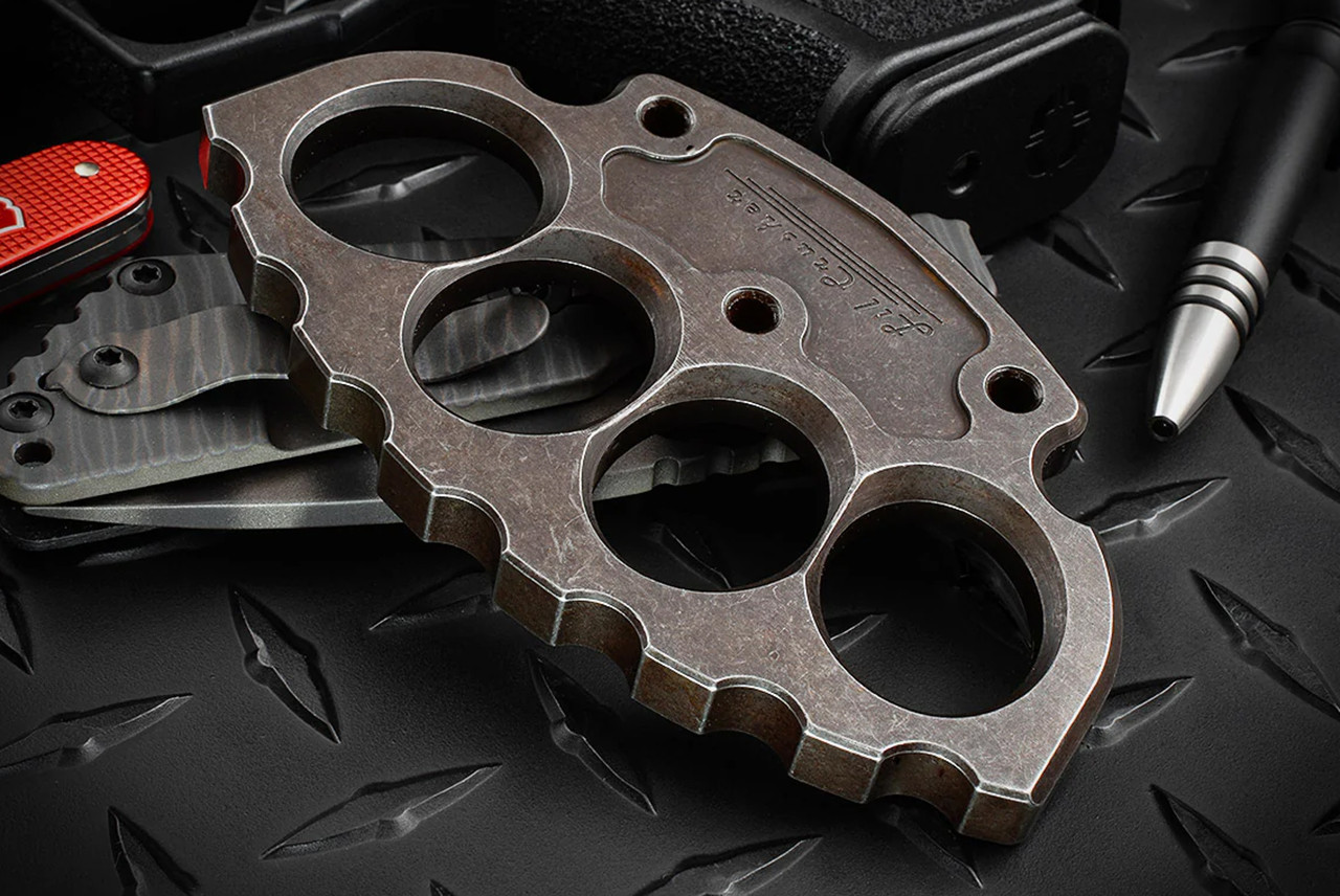 If you are looking for a fist full of confidence, Lil Crusher has your back! Lots of design time went into creating a four-finger meat tenderizer, napkin holder, paperweight, forehead scratcher, grill adjustment tool. We wrapped all of those features up in 9.7 ounces of 1018 mild steel with a plum brown, patina finish. These will rust if not oiled and cared for properly, but that can also add to the old school character!