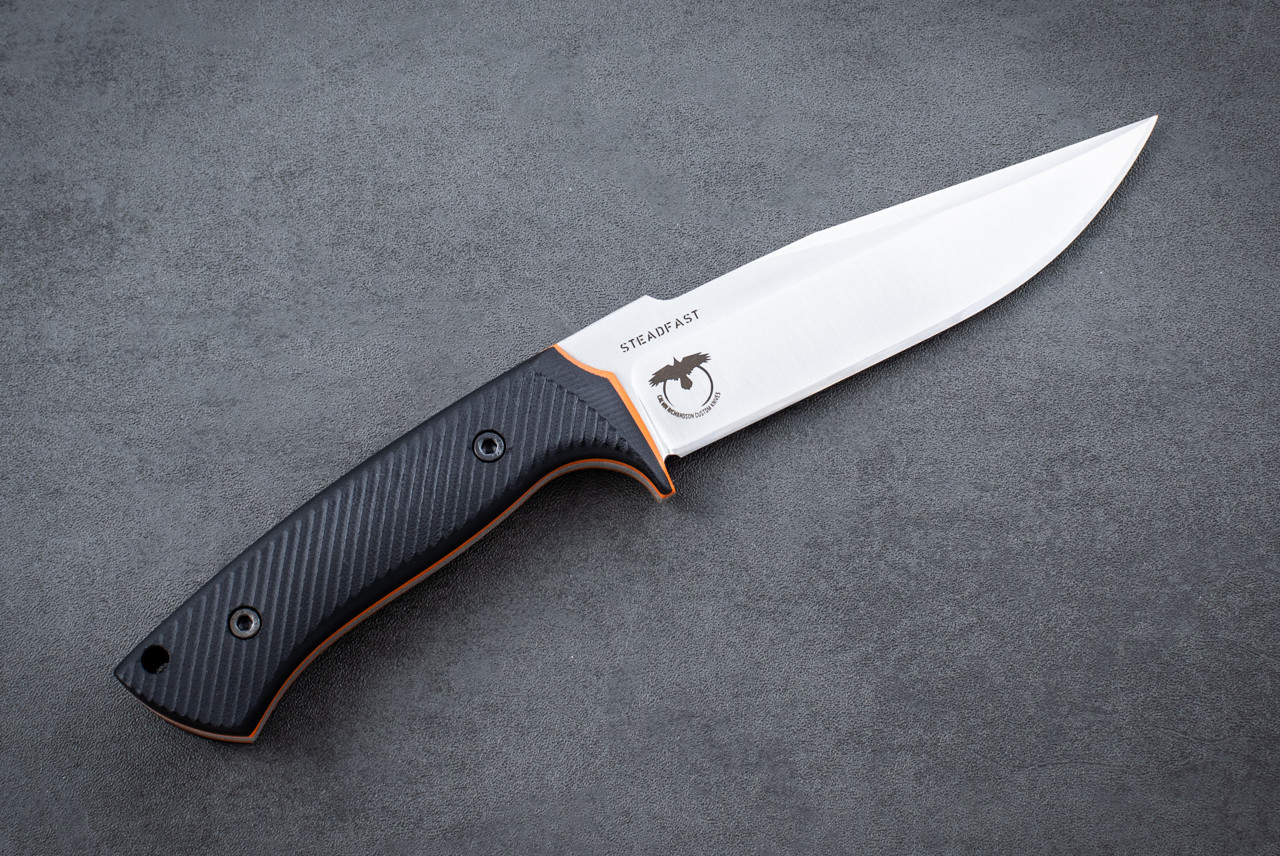 Designer: Calvin Richardson The Steadfast is my take on the field knife. It's equally at home in the woods, being used for survival tasks, on your hip while out hunting, or in a self-defense situation. I designed something that I would want to carry. The straight clip creates a fine tip that can be used for drilling or piercing. It always leaves more mass behind the tip for added strength. The handle is designed to be comfortable in multiple grips and multiple hand sizes. Pack one on your next hike or hunt, or pack it in your bugout bag. It won't let you down. Specifications: